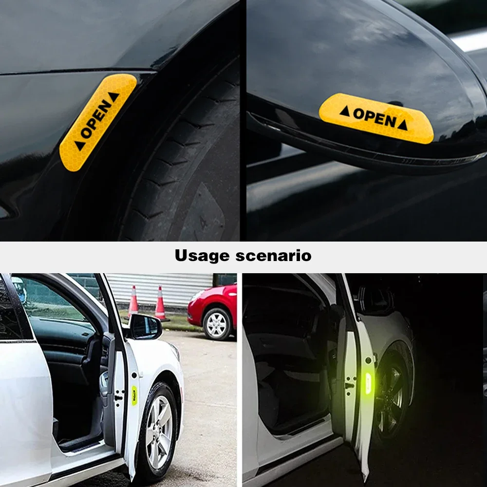 4PCS Reflective Car Door Sticker Safety Opening Warning Reflector Tape Decal Car Accessories Exterior Interior Reflector Sticker