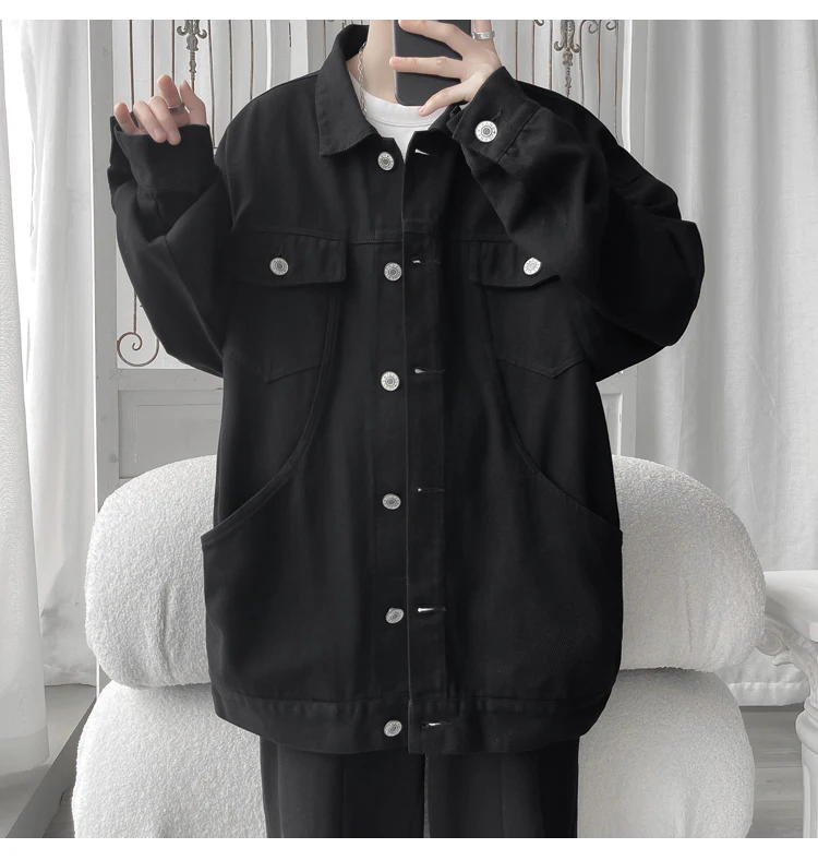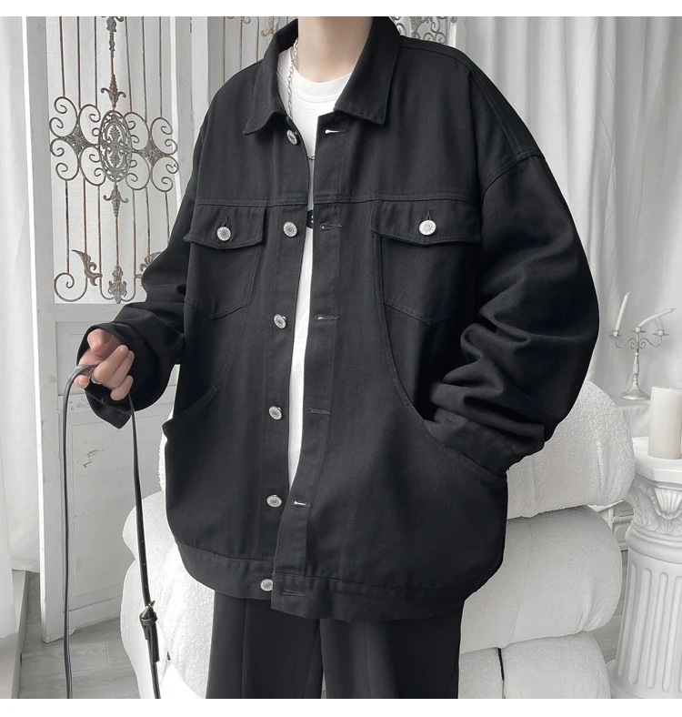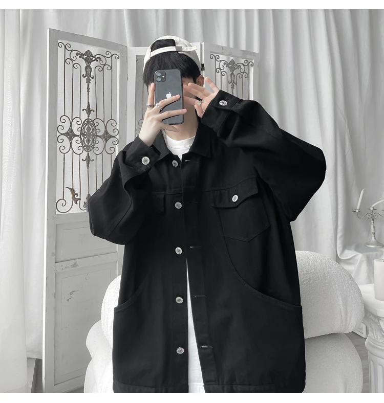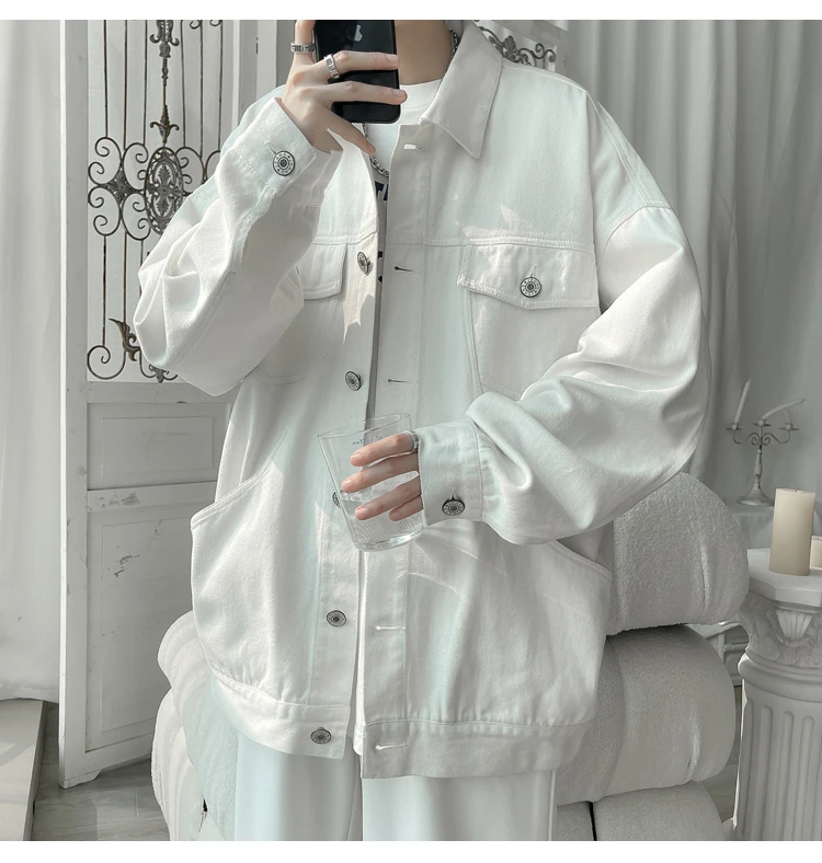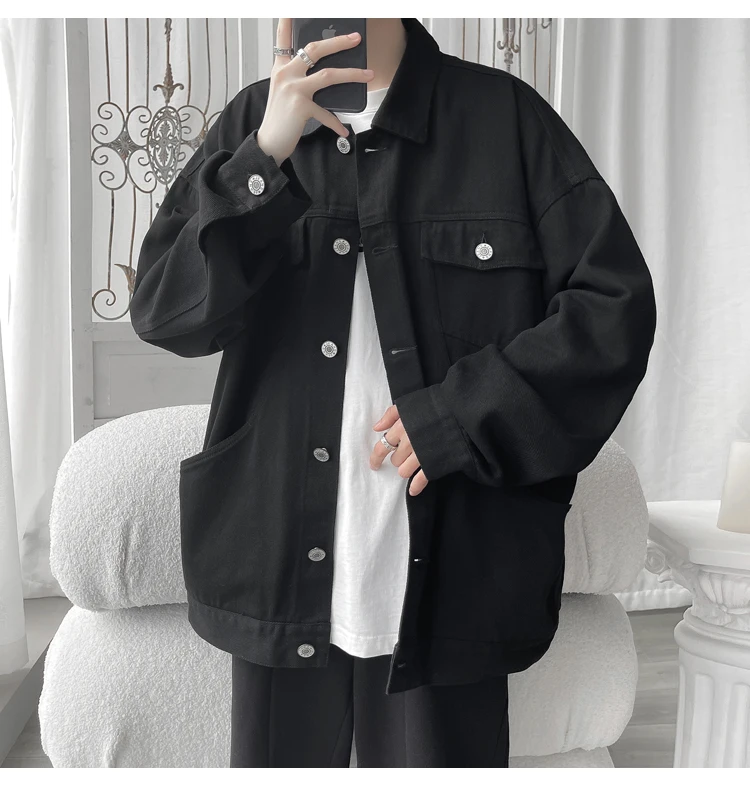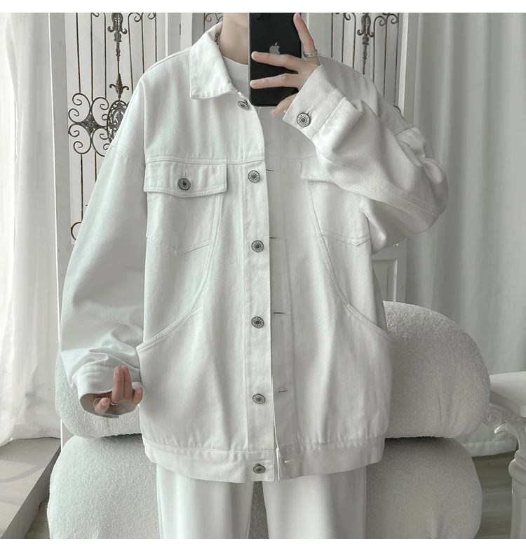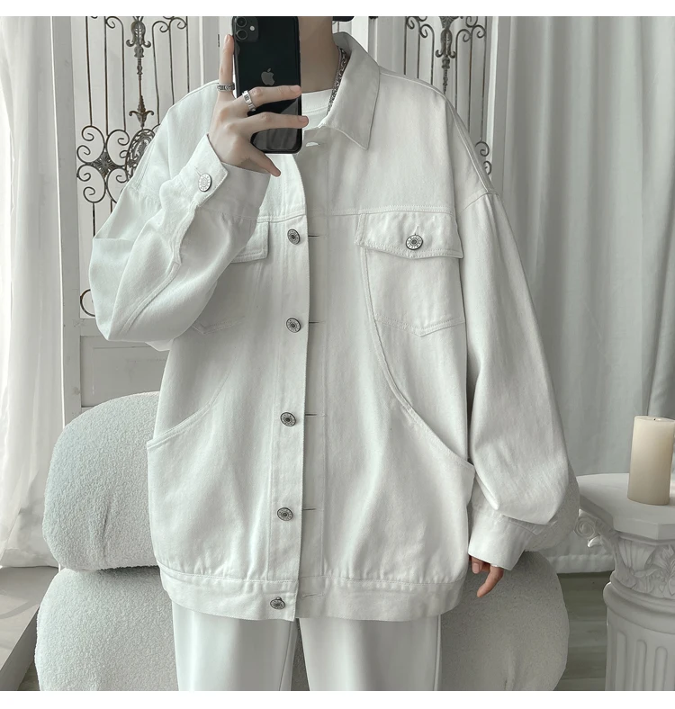 New in 2023 Streetwear Fashion Black Red White Oversize Hole Jeans Jackets Men Plus Size Simplicity Casual Denim Jacket Men