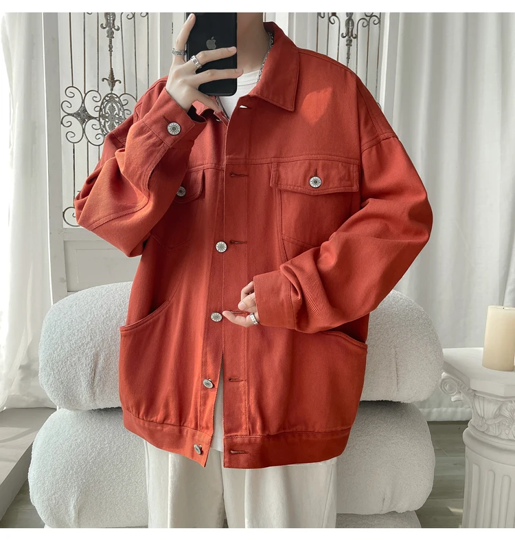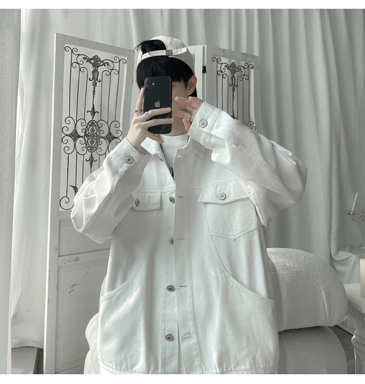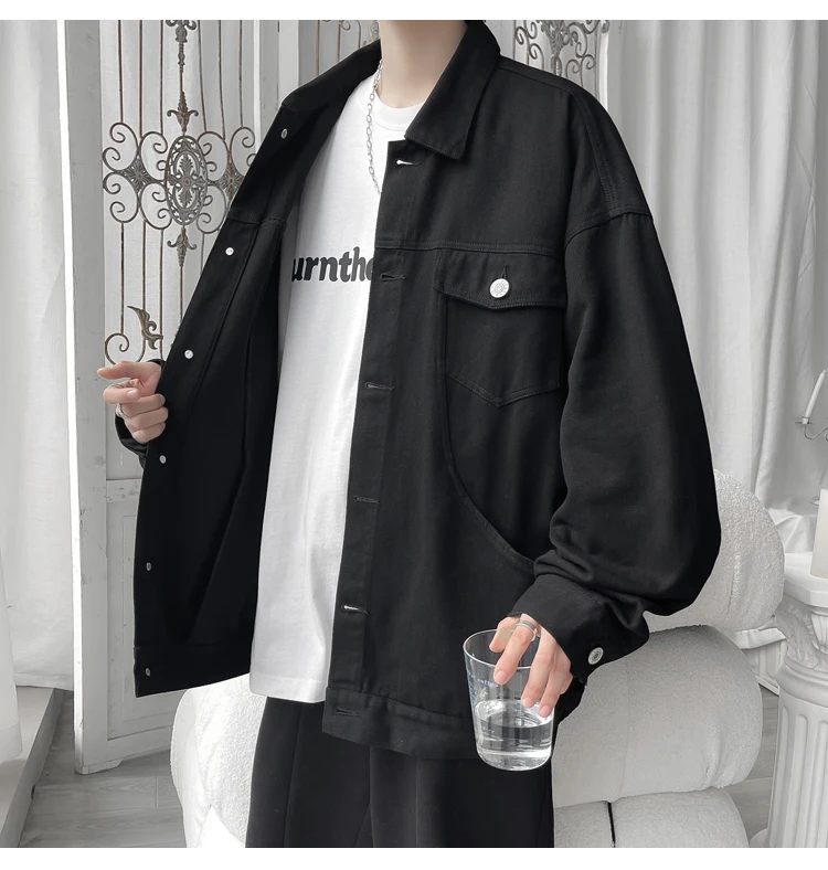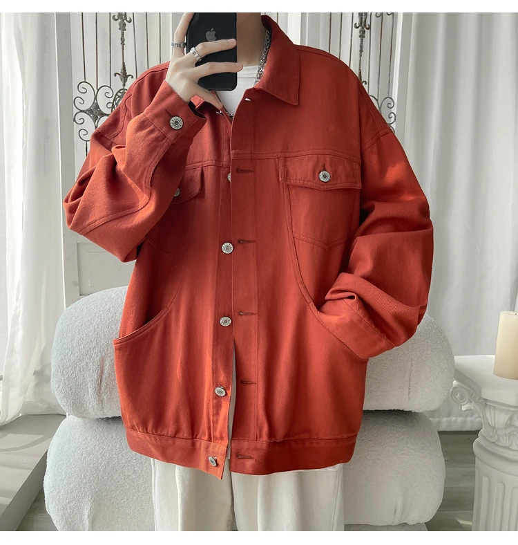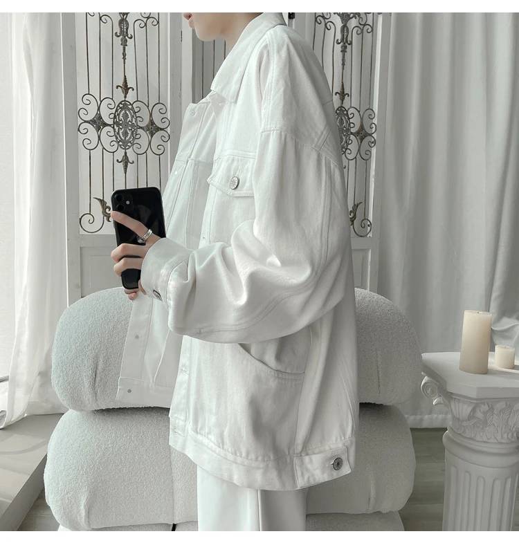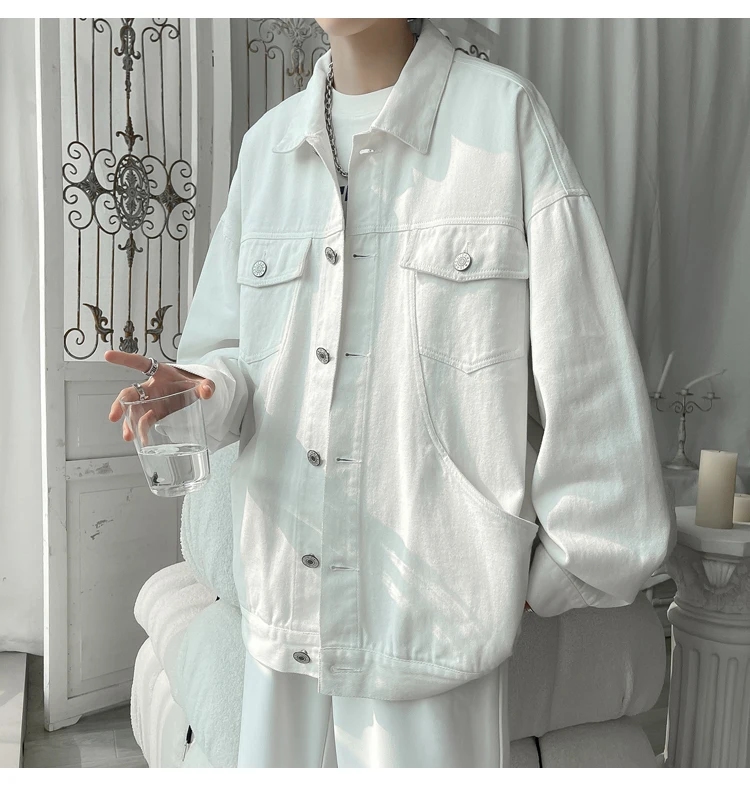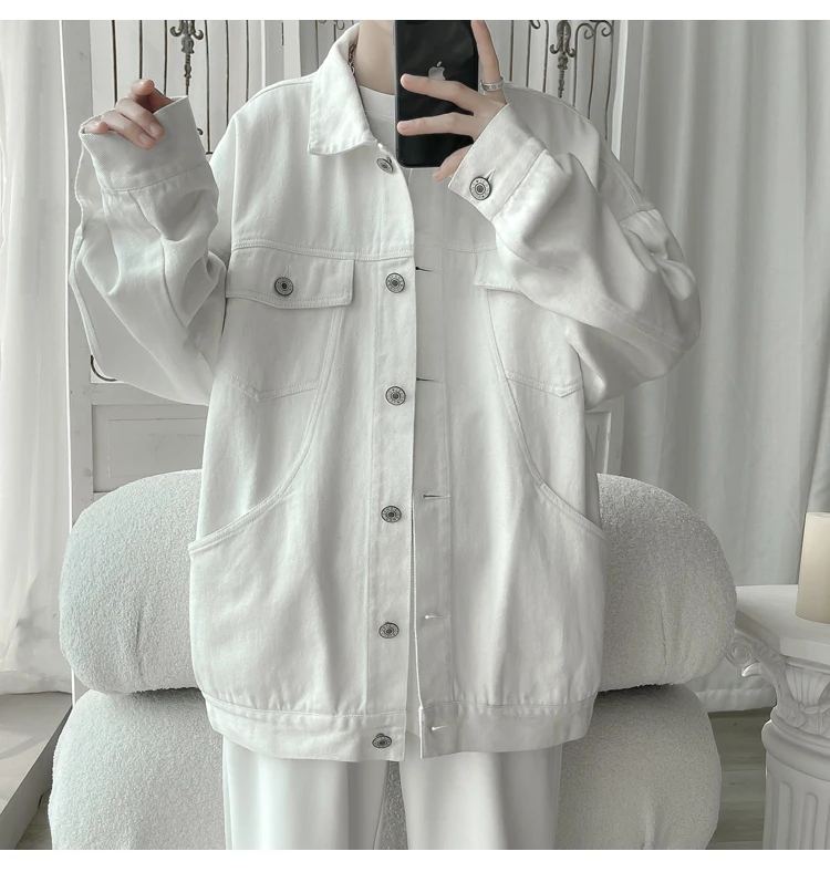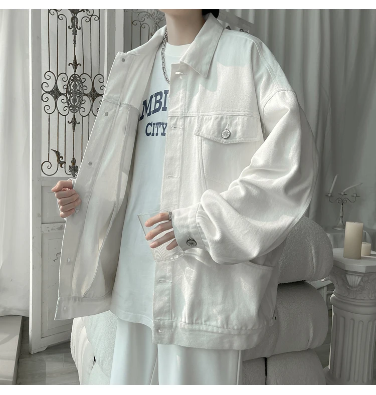 New in 2023 Streetwear Fashion Black Red White Oversize Hole Jeans Jackets Men Plus Size Simplicity Casual Denim Jacket Men