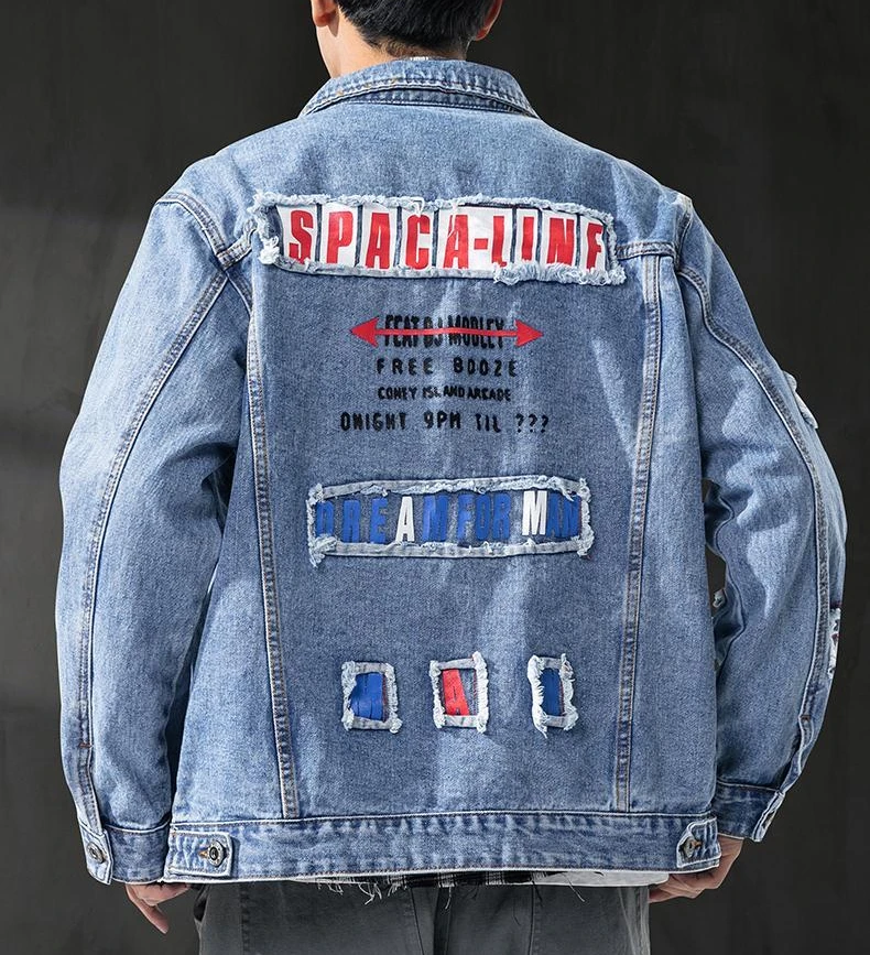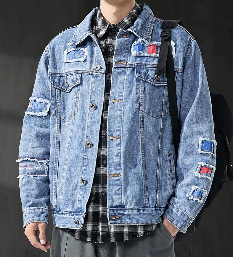 GELITAYIN Men's Denim Jacket Ripped Autumn With Hole Male Jean Coats Oversize Light Vintage Washed Elatic High Quality Low Price