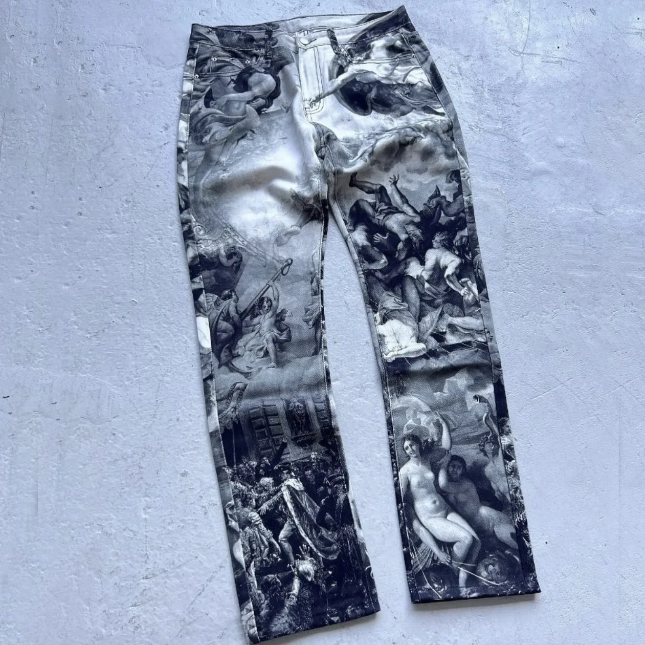 Jeans Hip Hop Talle Alto con Estampado de Caricaturas – Pantalones Y2K Oversize Pierna Ancha Unisex Estilo Rock Streetwear