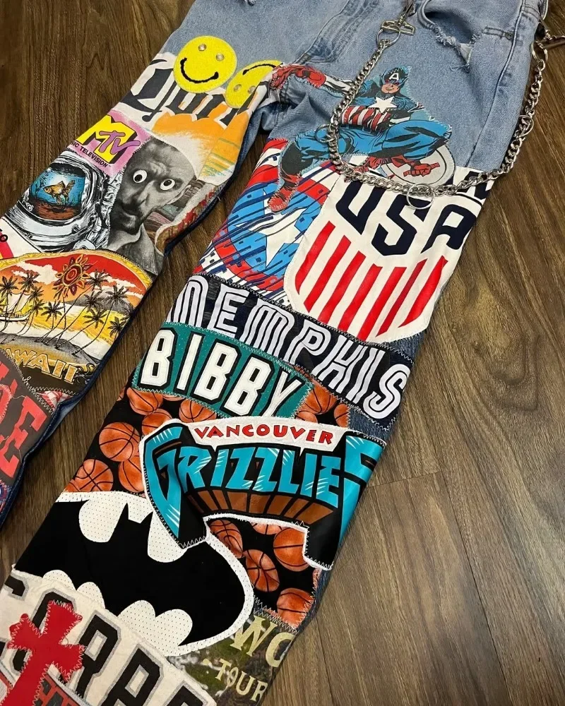 Los *Jeans Hip Hop Talle Alto con Estampado de Caricaturas* destacan por su diseño único que mezcla la estética Y2K con un estilo oversize moderno. Con pierna ancha, gráficos llamativos y corte unisex, son la elección perfecta para quienes quieren un look urbano auténtico.