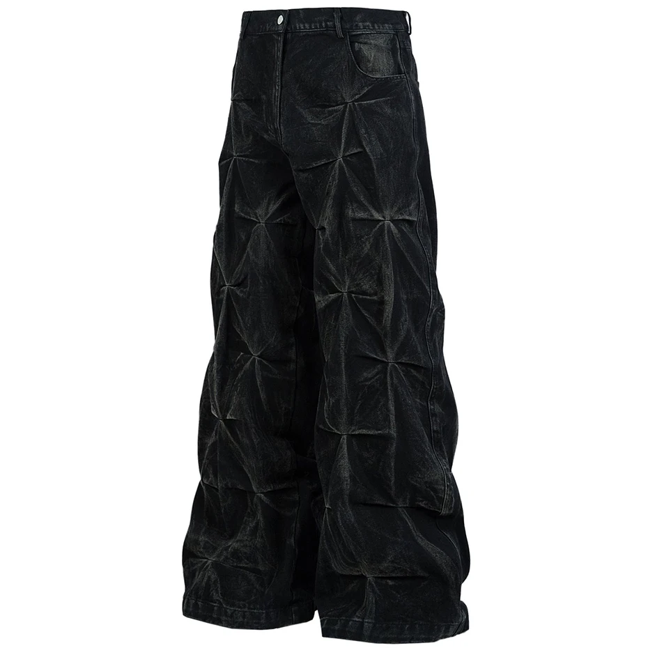 Jeans Negros Baggy Hombre | Pantalón Vaquero Plisado Streetwear Hip Hop Harajuku Oversize 2025