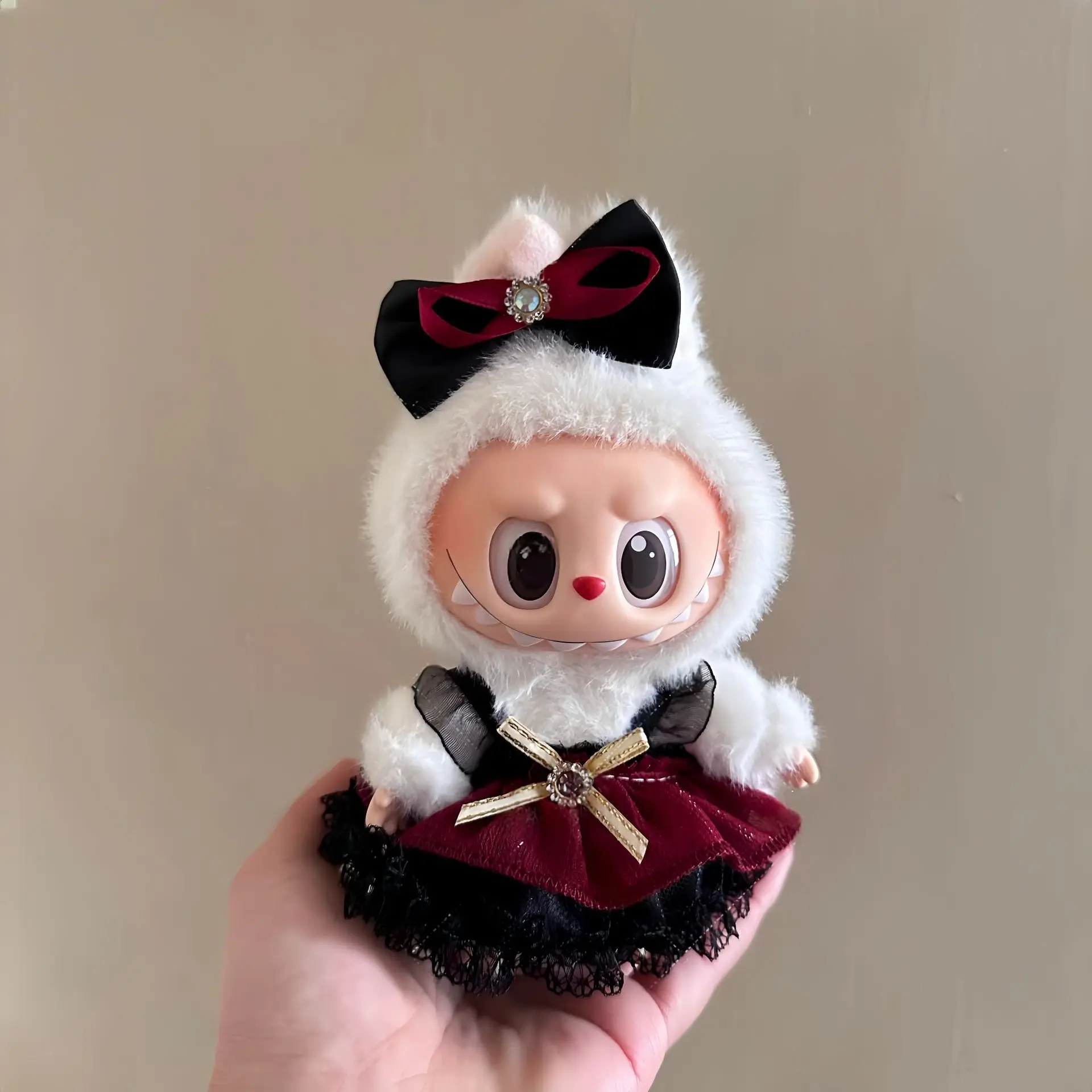 Labubu Peluche Colgante 17cm – Accesorios de Ropa Kpop Estilo Princesa con Vestido de Moño, Muñeco Idol Kawaii Regalo Colección