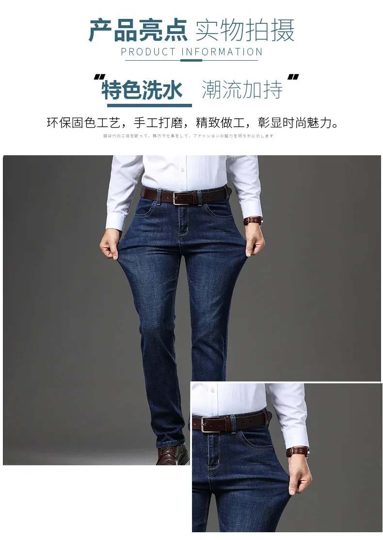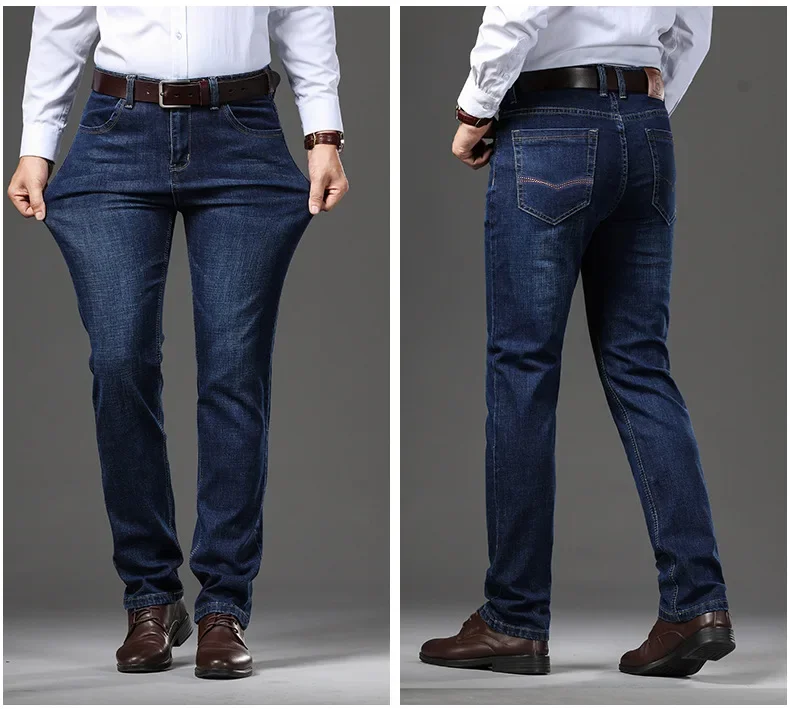 New Men's Casual Stretch Jeans Oversized Business Office Straight Leg Pants Fashion Classic Style Denim Trousers for Male