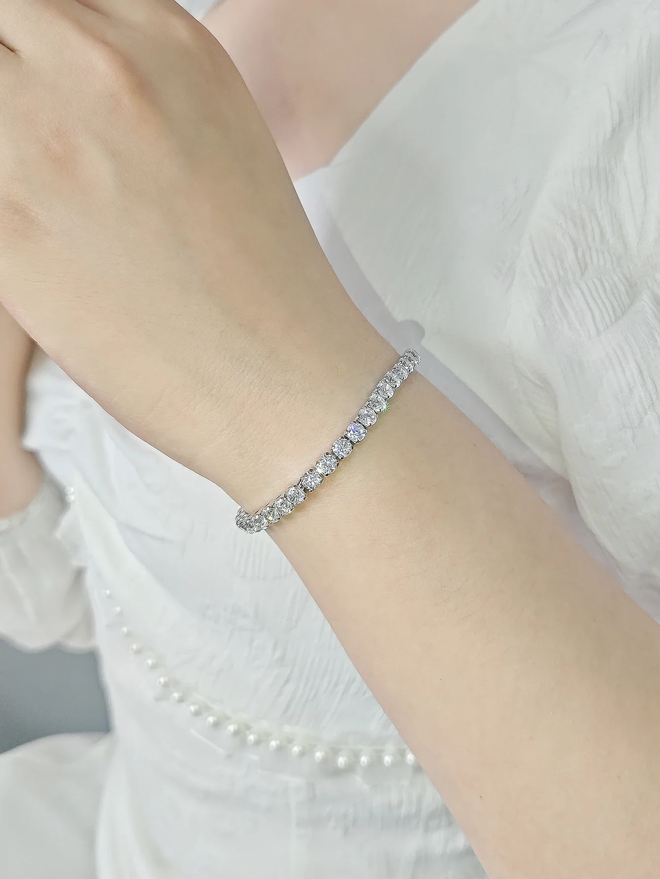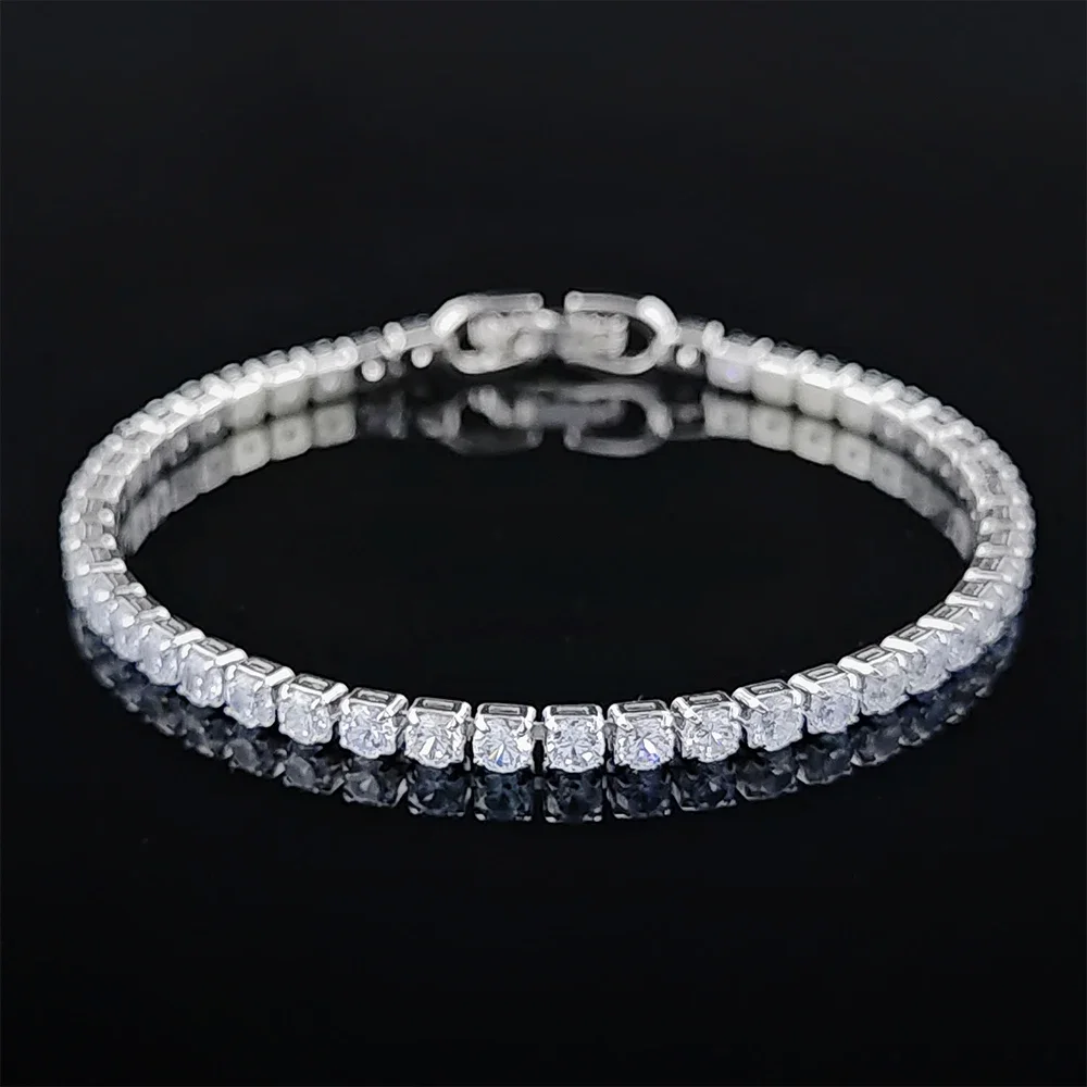 Luxury 4mm Round Silver Color on Hand Bracelet Bangle for Women Anniversary Gift Jewelry Bulk Sell Free Shipping Items S5650